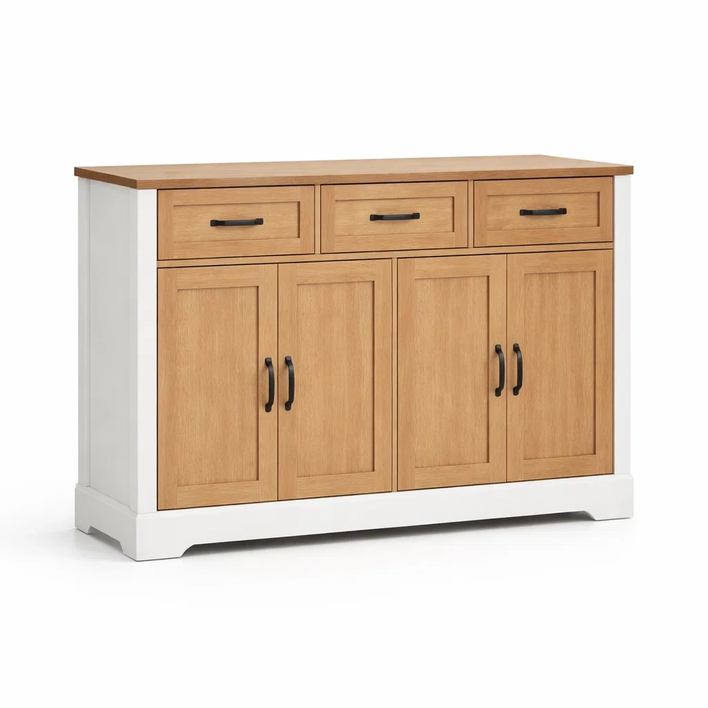 Buffet en Bois MDF avec 3 Tiroirs et 4 Portes Blanc et Chêne